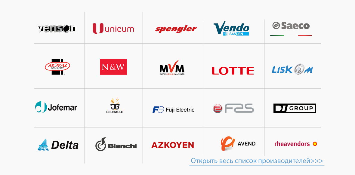Функционал системы мониторинга доступен для абсолютного большинства торговых автоматов представленных на рынке. На текущий момент совместимость наших решений проверена с торговыми автоматами более чем 20 популярных производителей.